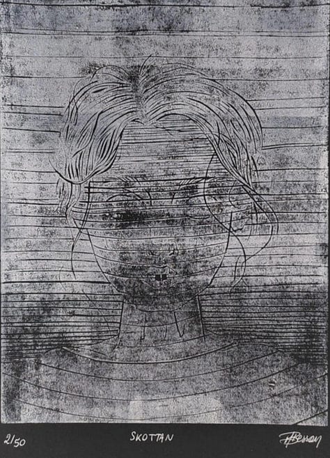 For those familiar with medieval Scandinavian culture, the visual metaphor is striking. The runic alphabet, which avoids horizontal strokes to remain legible when carved into wood, operates under similar constraints. Skottan thus becomes a meditation on legibility, identity, and the conditions of visibility: a feminine face emerges only through vertical inscription, its features shaped and obscured by the medium that contains it. It is a powerful fusion of form and function, art and semiotics.